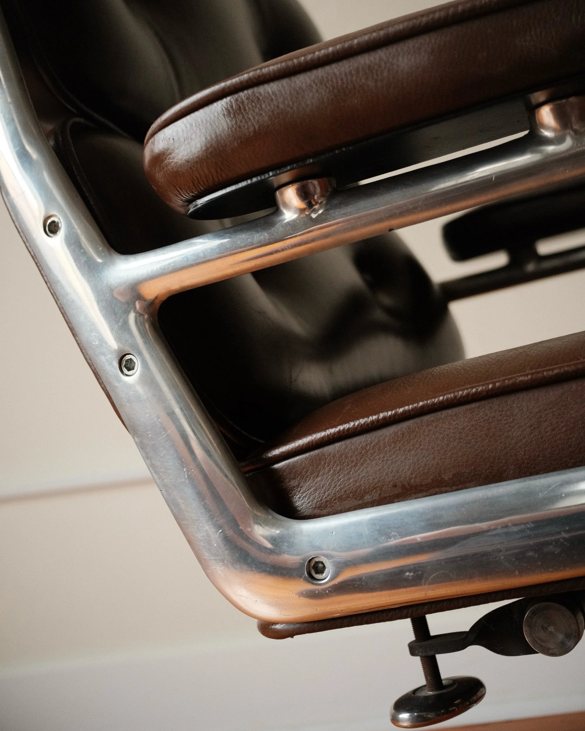 Balancing architectural form with everyday function. Each piece is produced in the US by skilled leather artisans, using hand-selected upholstery-grade leather known for its durability and refined texture.