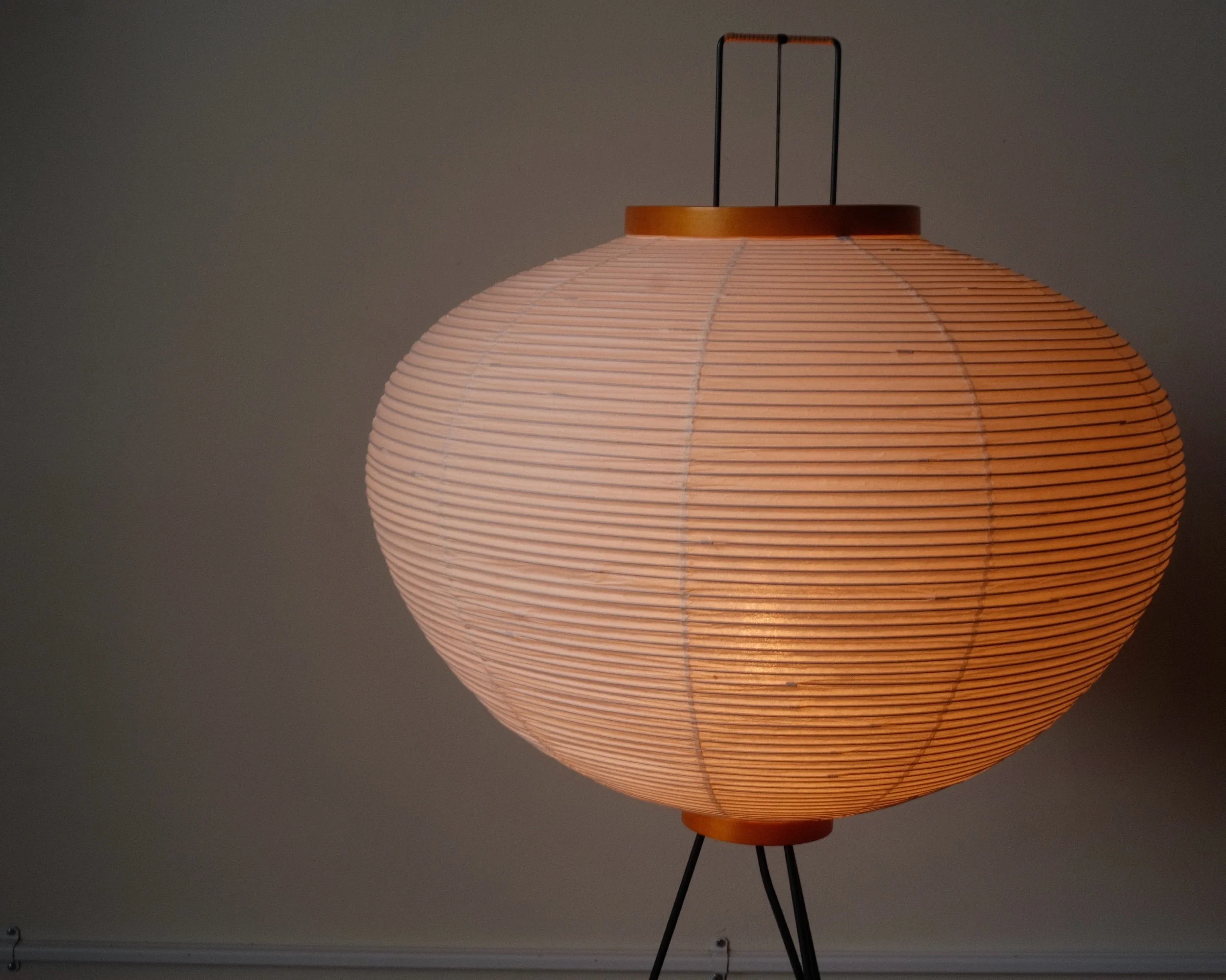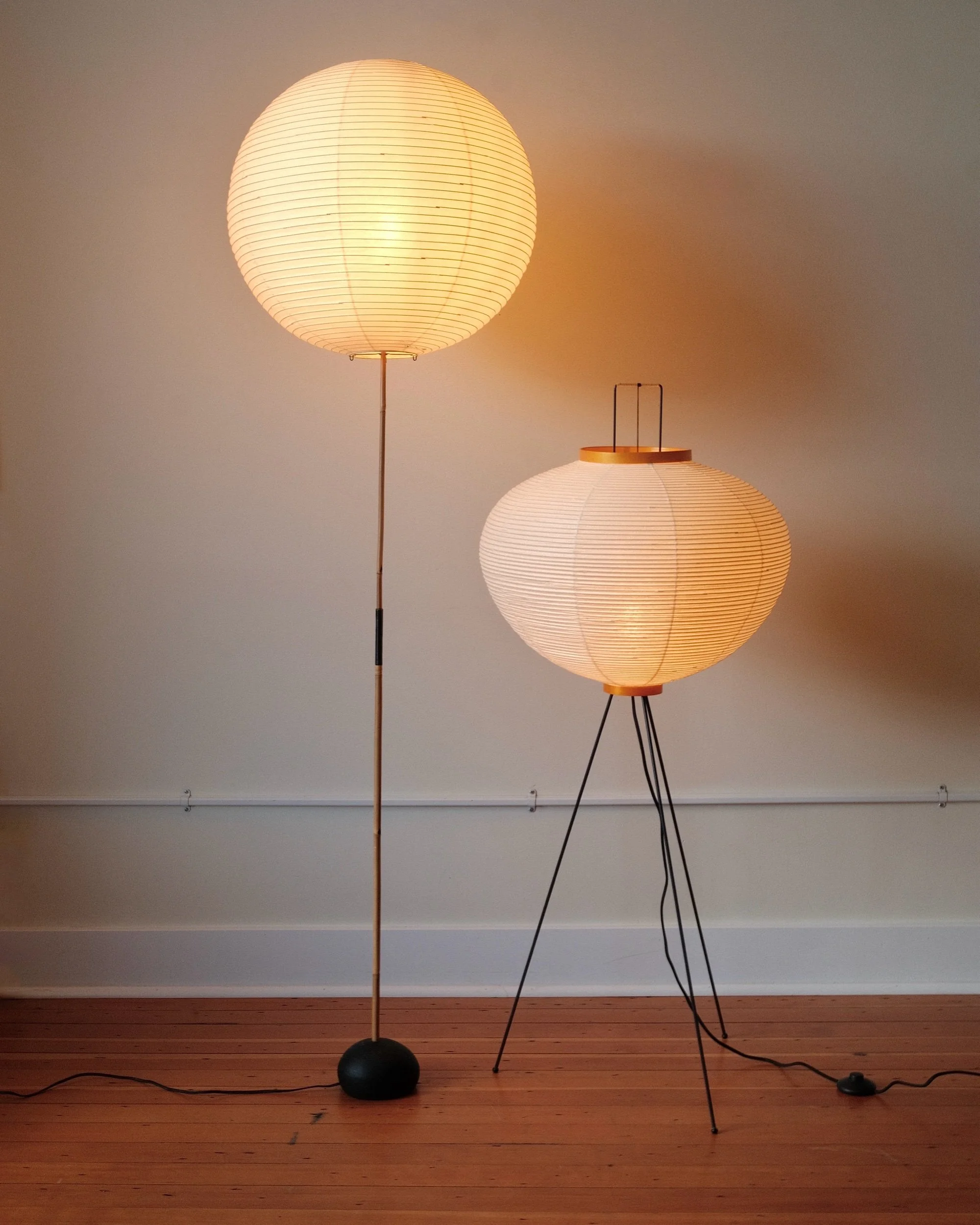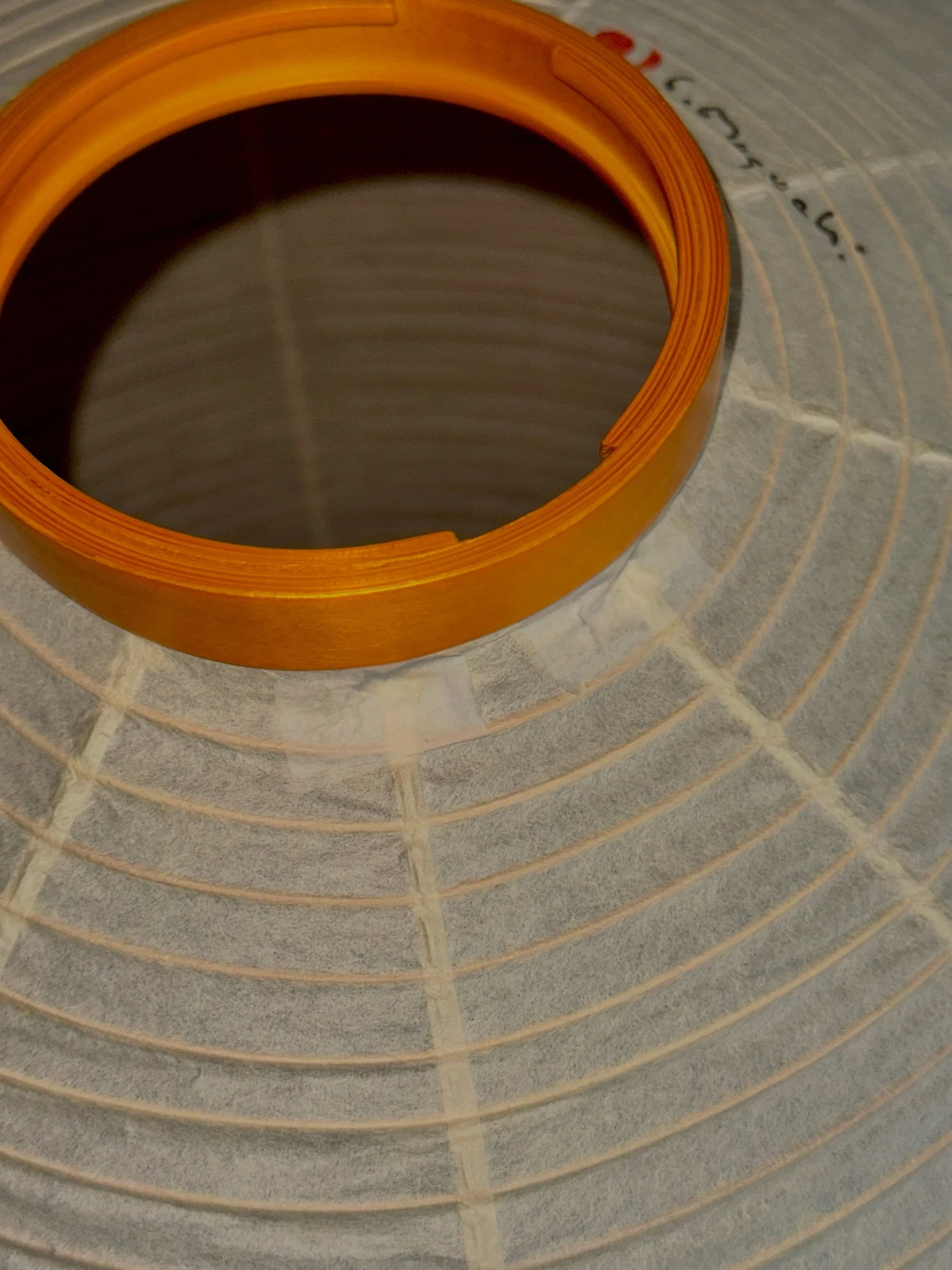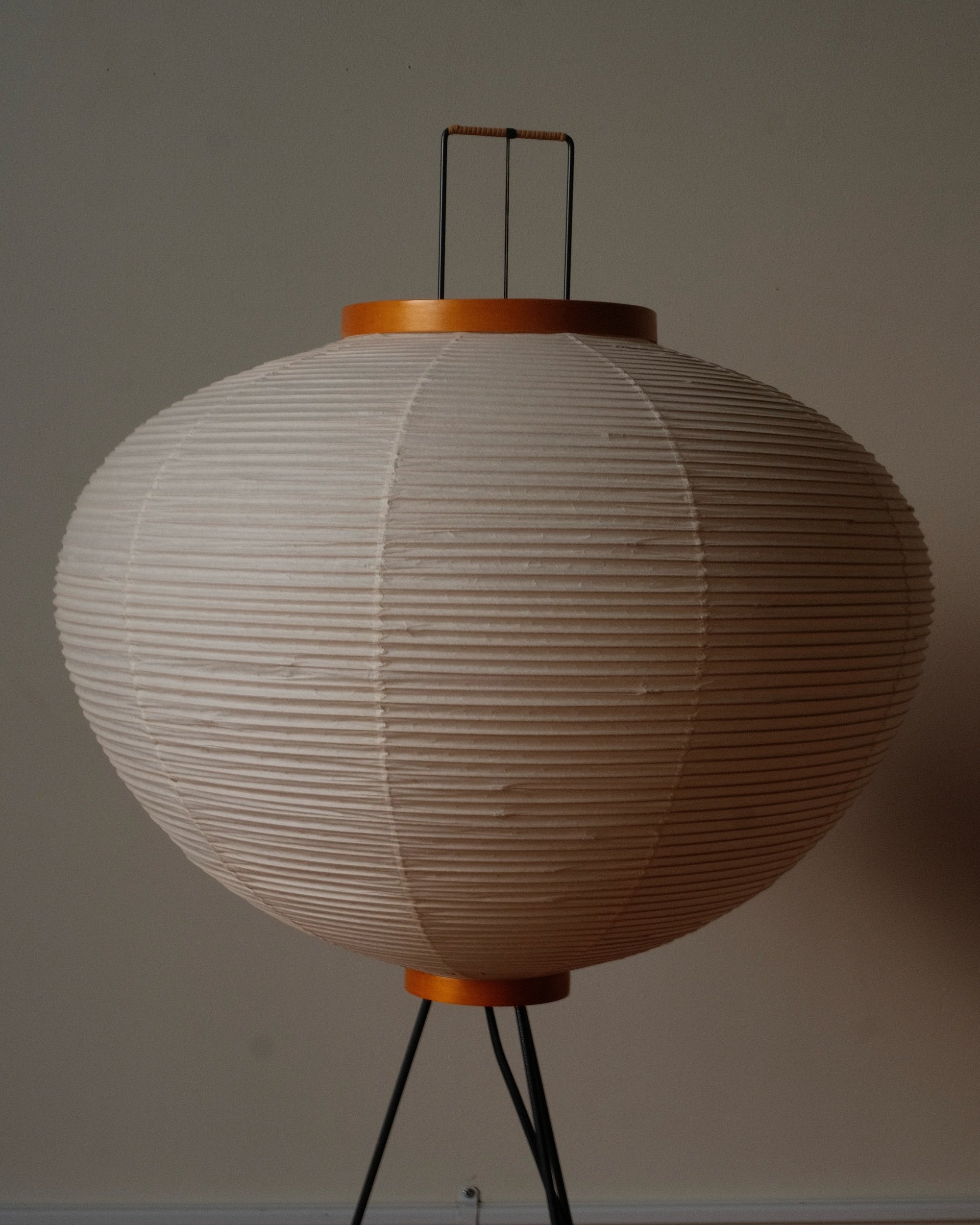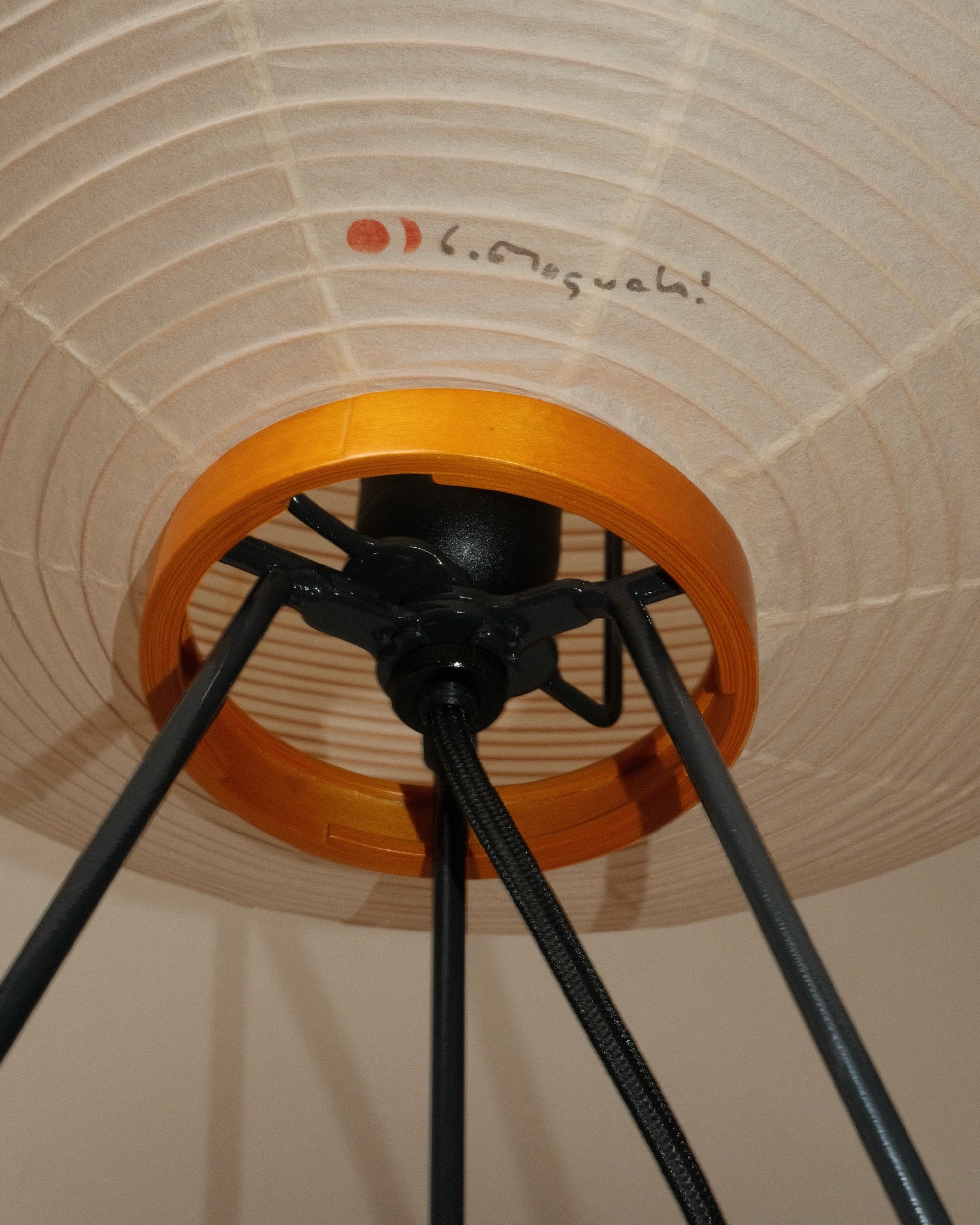 Materials: Handmade washi paper and bamboo ribbing, supported by a metal frame.