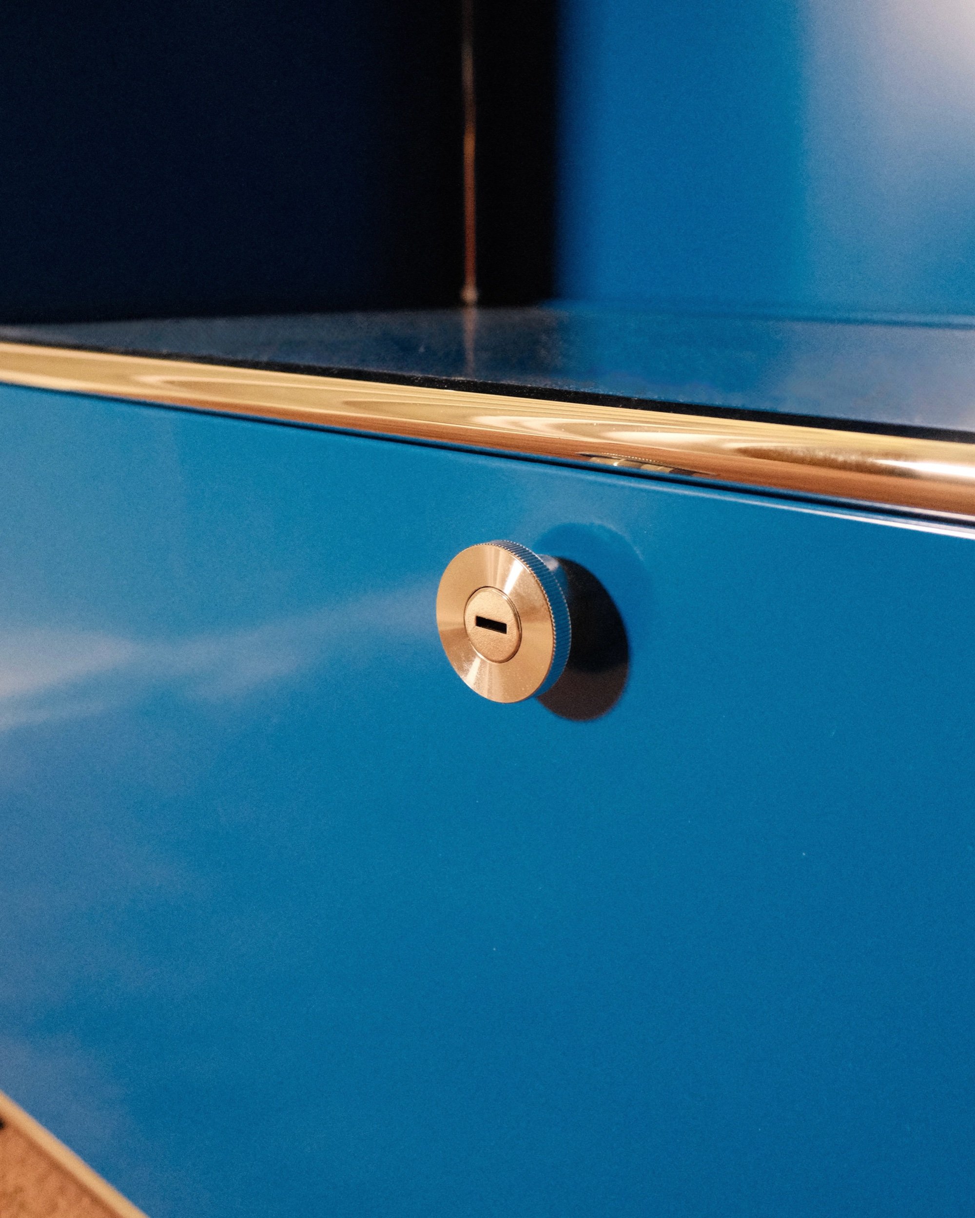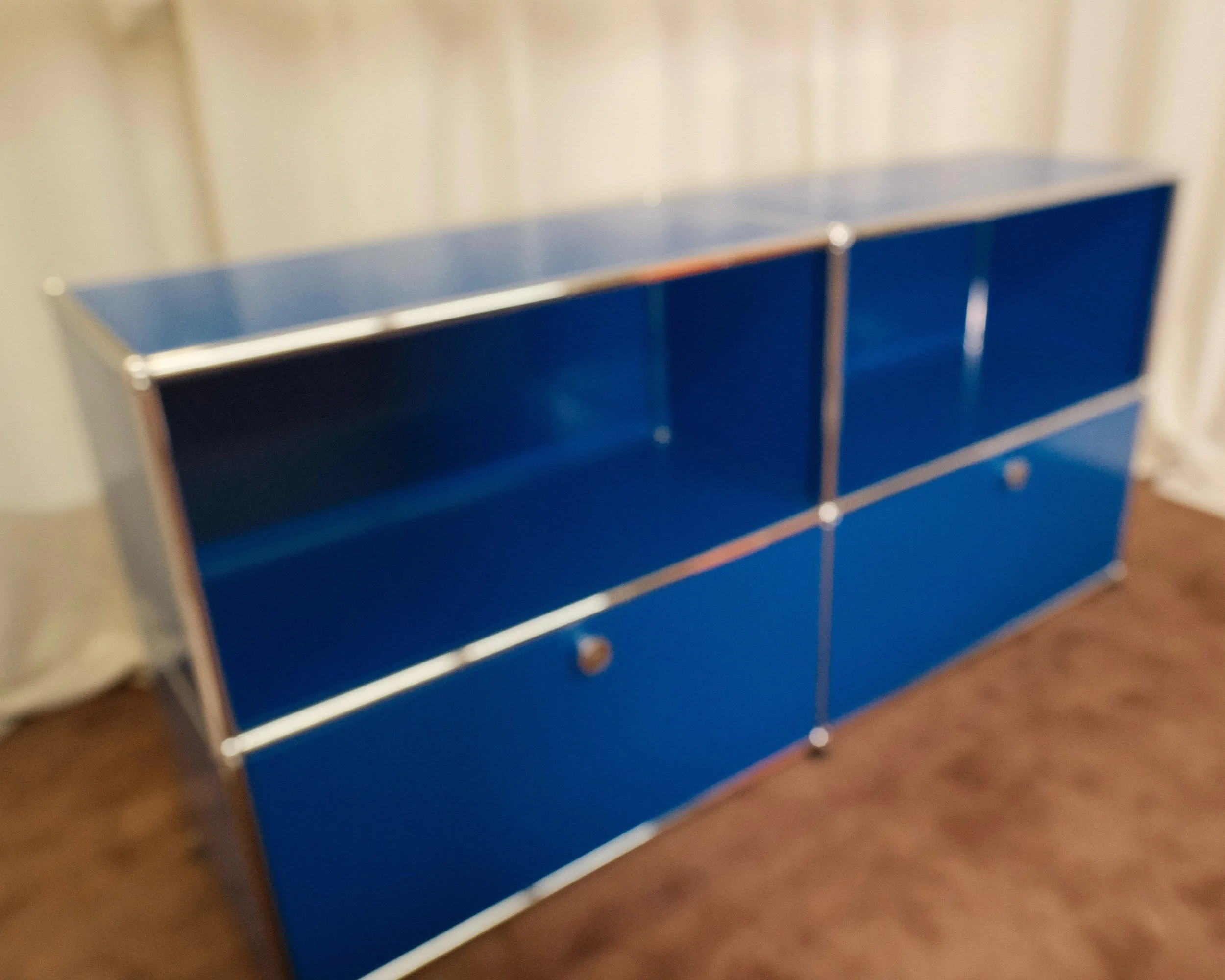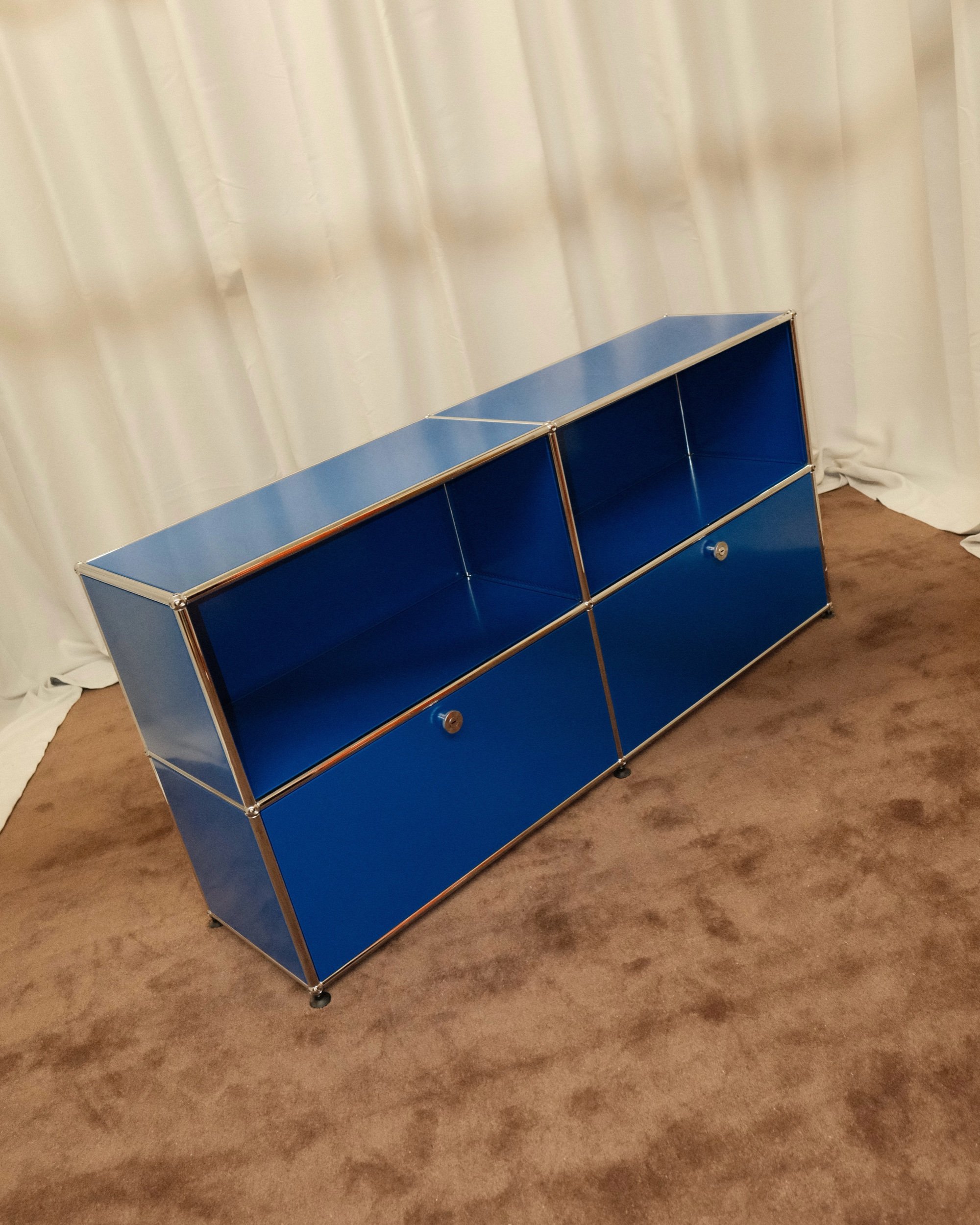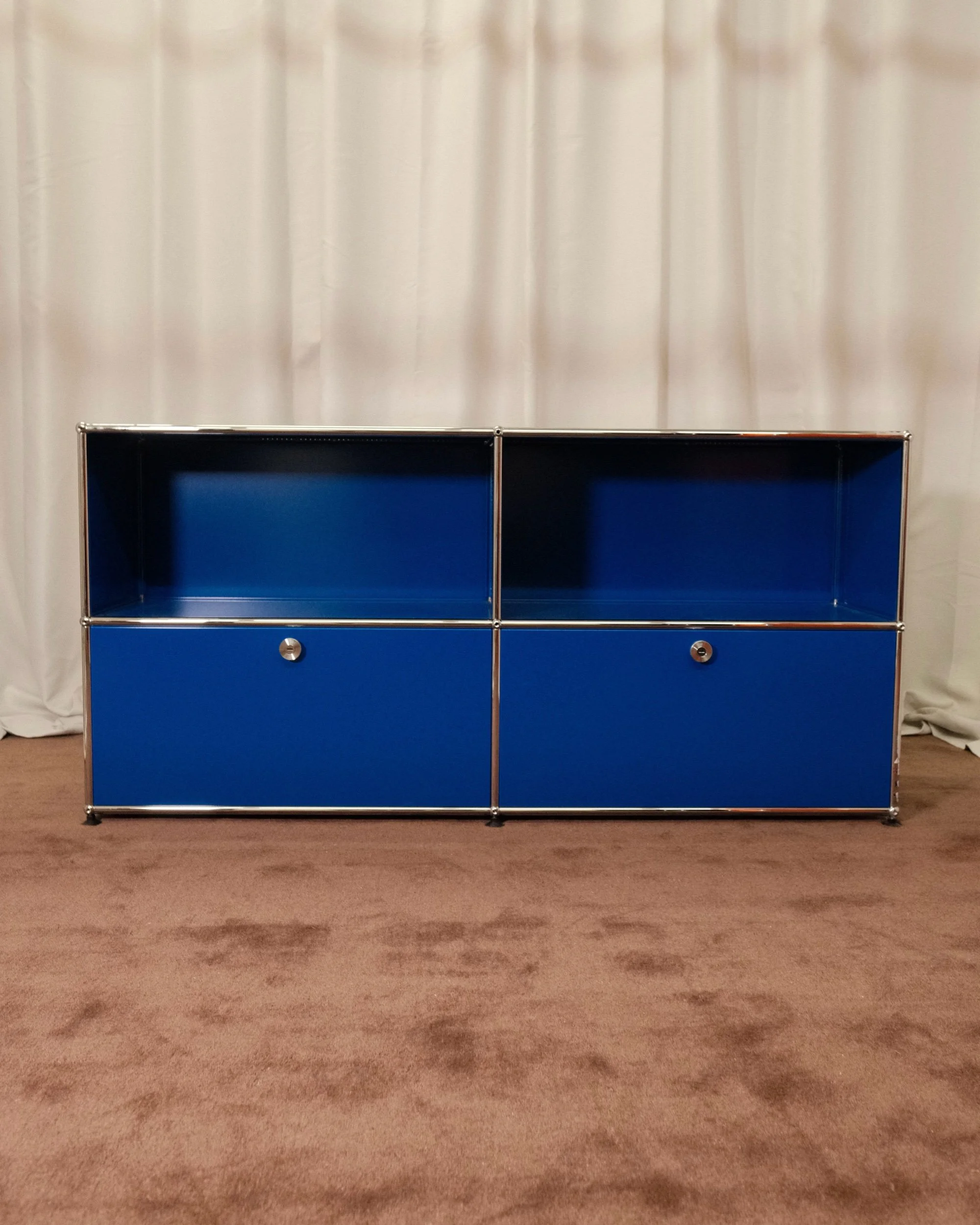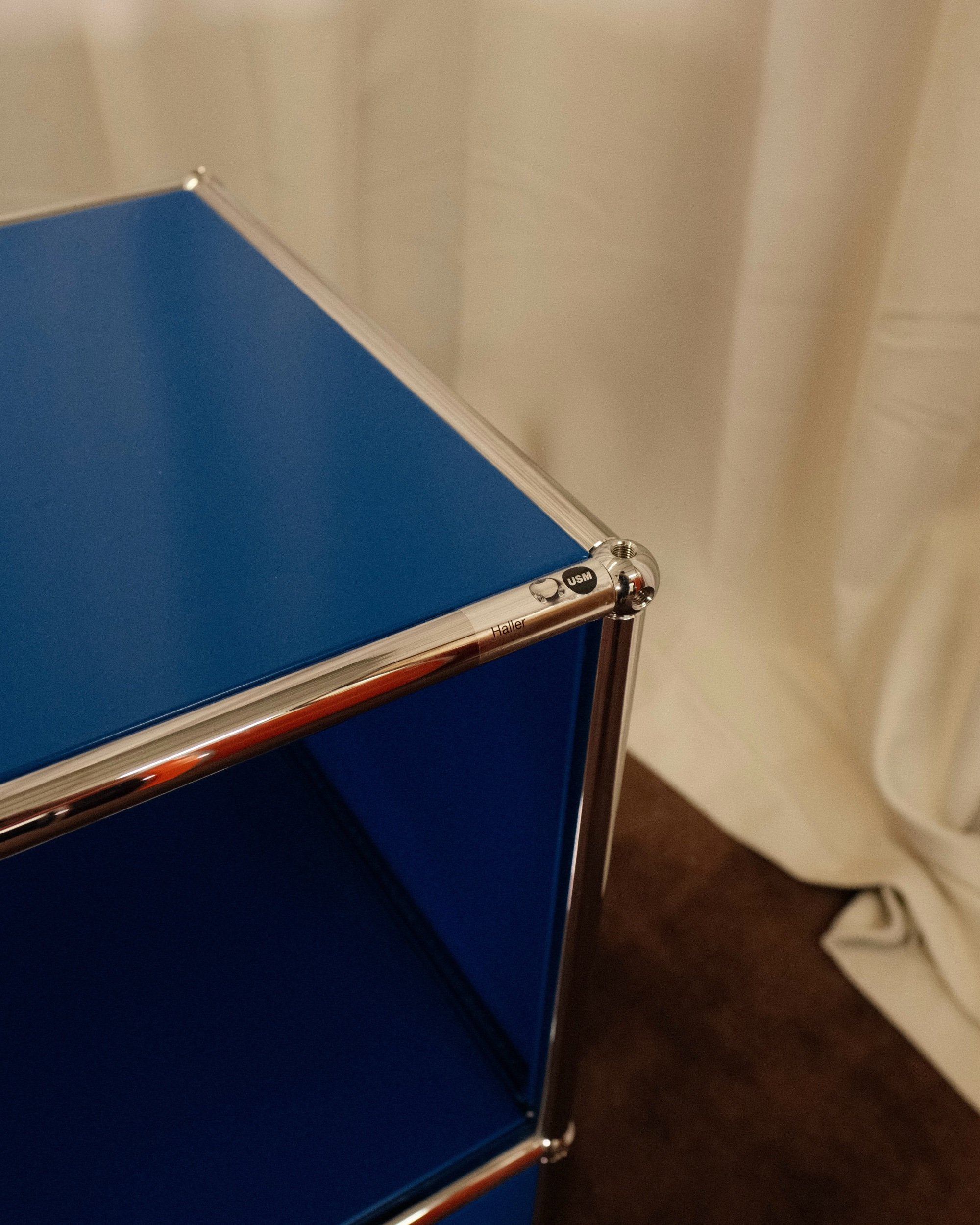Materials: USM Gentian Blue paint, powder coated steel and chrome plated steel tubes.